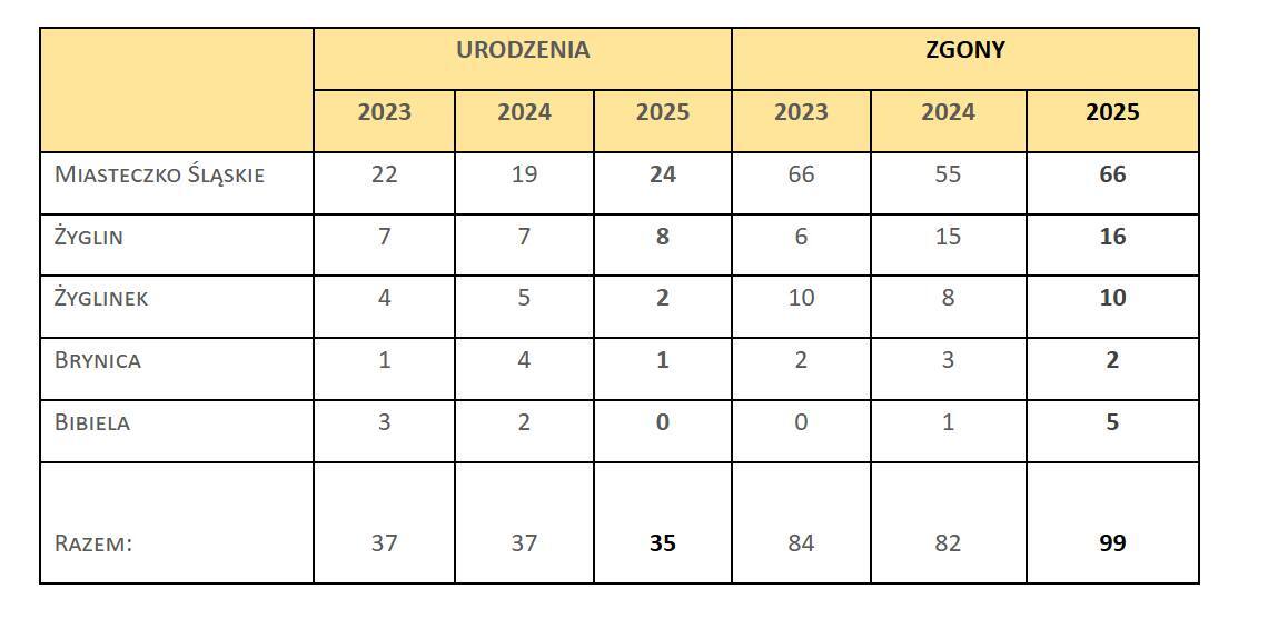 Dla porównania na koniec 2024 roku liczba ludności rejestrowanej wyniosła 6613 osób. Z kolei w 2023 roku było ich 6691. Podczas ostatnich 12 miesięcy spadła też liczba narodzin. Z 37 w 2024 r. oraz w 2023 r. zmniejszyła się do 35. Urzędnicy zaznaczają, że nie jest to zmiana drastyczna, ale trend utrzymuje się na historycznie niskim poziomie. Ile odnotowano zgonów? W 2025 roku w gminie zmarło 99 osób. Rok wcześniej liczba ta wyniosła 82, a w 2023 r. - 84.